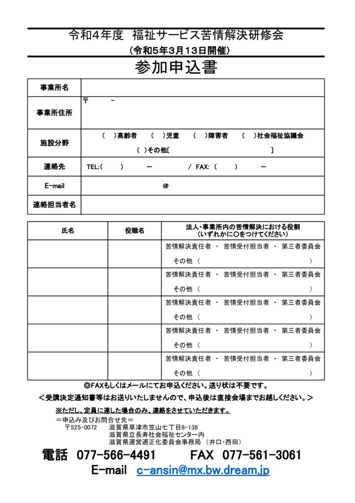 滋賀県運営適正化委員会ならびに滋賀県社会福祉法人経営者協議会の共催により別添要項のとおり開催いたします。